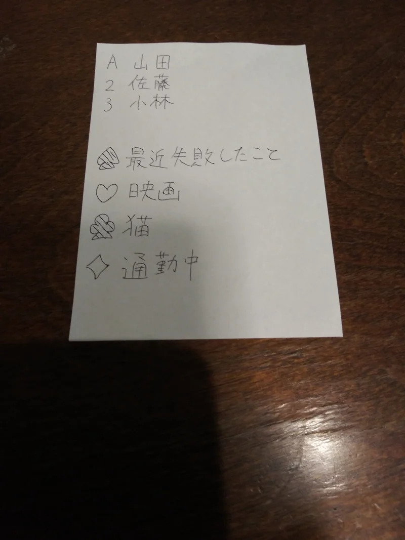 ② ♠♡♣♢4つの絵柄に、参加者が話してみたいテーマを自由に割り振る。