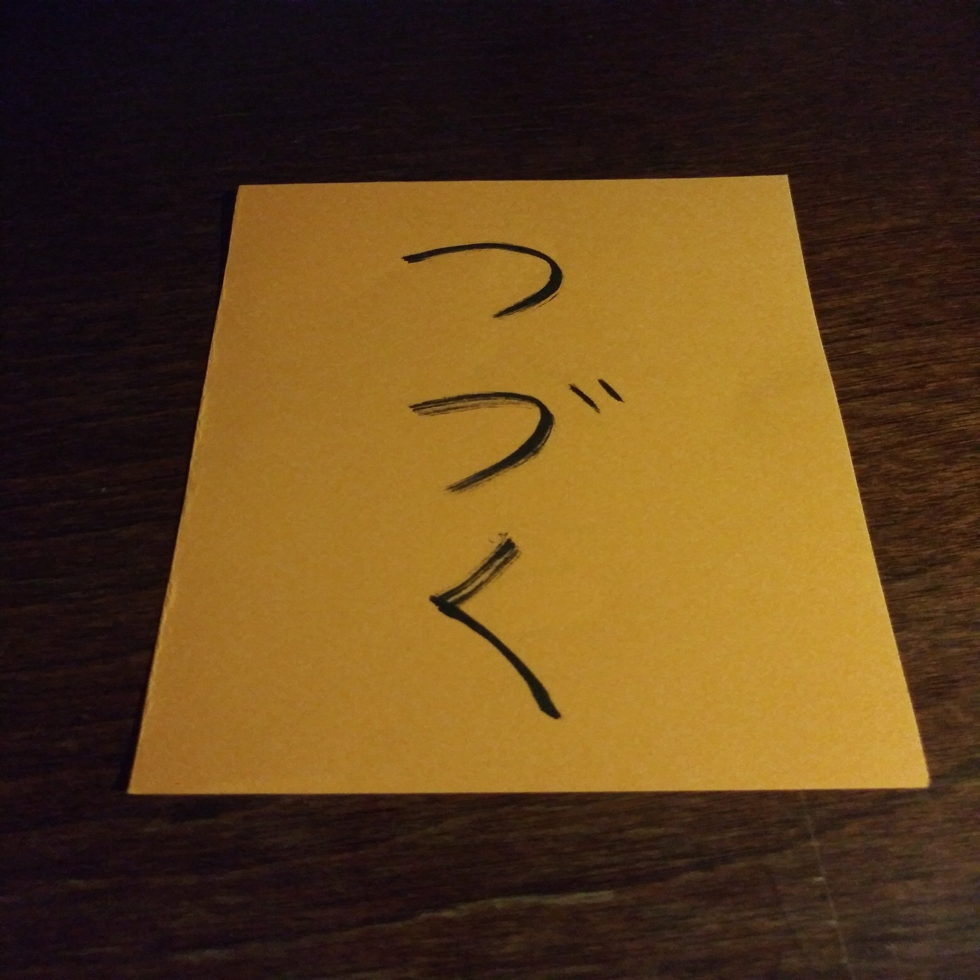 ③ 先攻の者が紙をひっくり返したとき、次に紙をひっくり返す権利は左隣の者に移る。左隣の者はまた自由なタイミングで紙をひっくり返す。こうして権利が時計回りに巡っていき、全員が2回紙をひっくり返したら紙の面は「つづく」になる。最後はこの状態で会話を続行し、参加者の合意によってゲームは終了する。